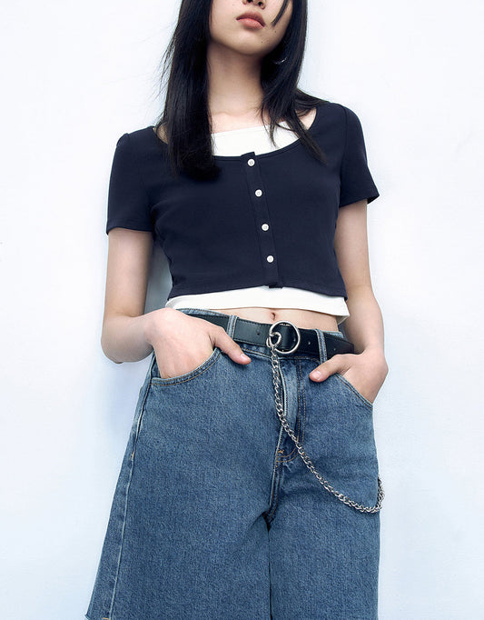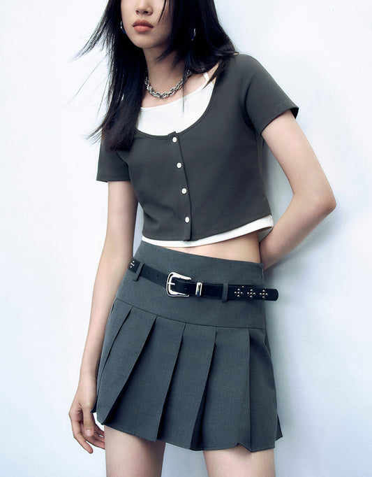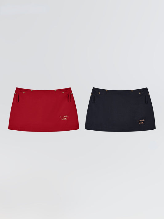 "I LOVE ME" Embroidered Rose Belt A-Line Mini Skirt