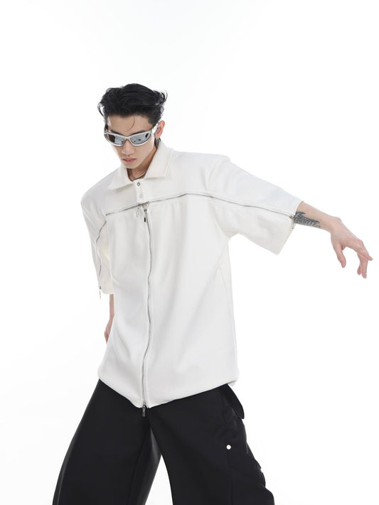 Innovative Multi-Zip Polo Shirt with Padded Shoulders and Notched Collar