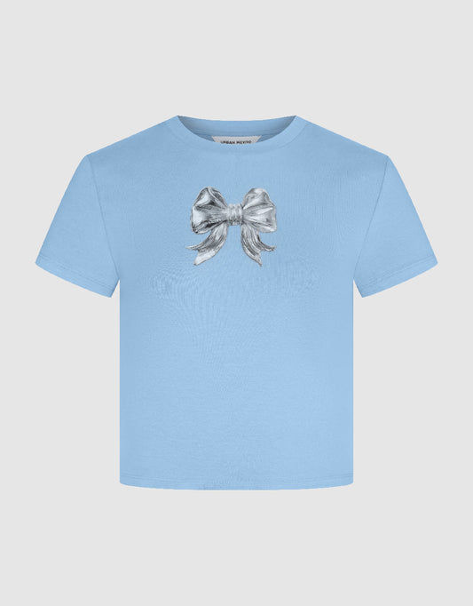 Bow Tie Printed Crew Neck Skinny T-Shirt