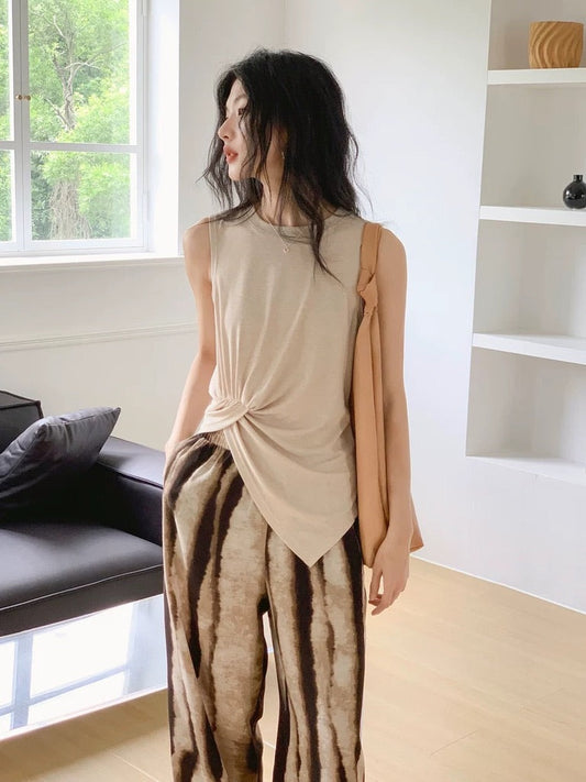 Sleeveless Keyhole Neck Knitted T-Shirt