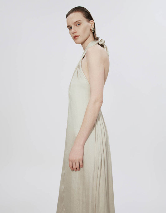 Sleeveless Halter Neck A-Line Dress