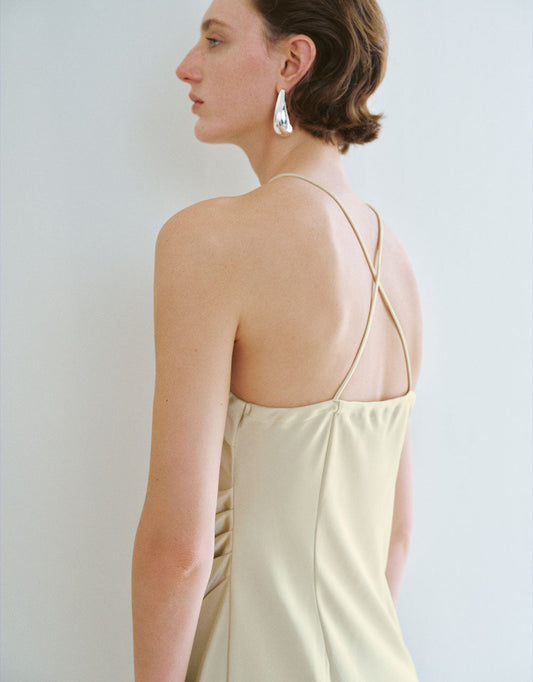 Sleeveless Drape Shirring Top in Beige