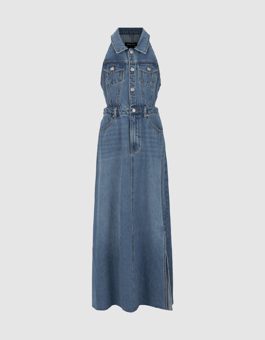 Sleeveless Halter Neck Denim Dress