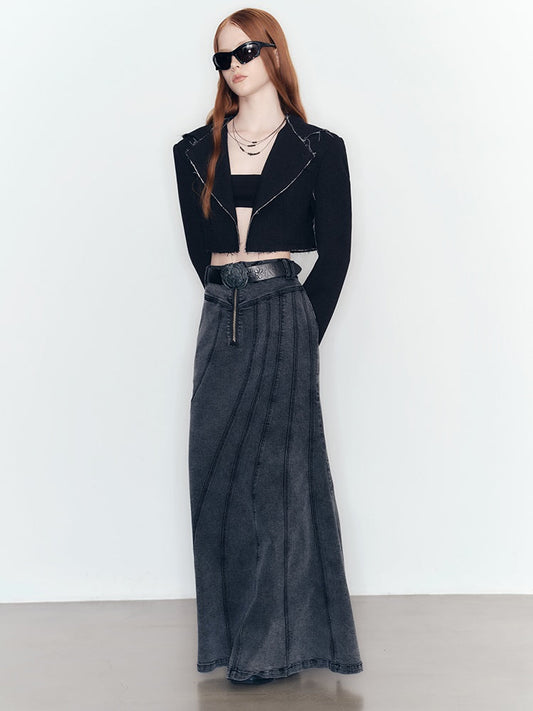 Streamlined Fishtail Denim Skirt