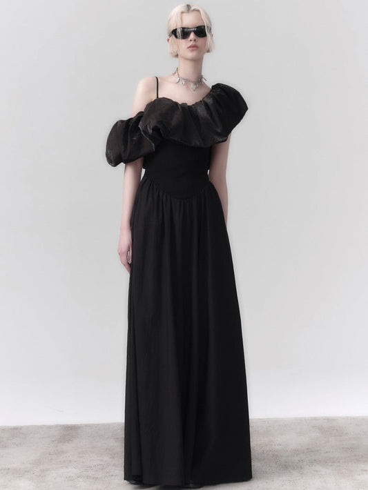 Strap Off-shoulder Ruffle Stitching Dress