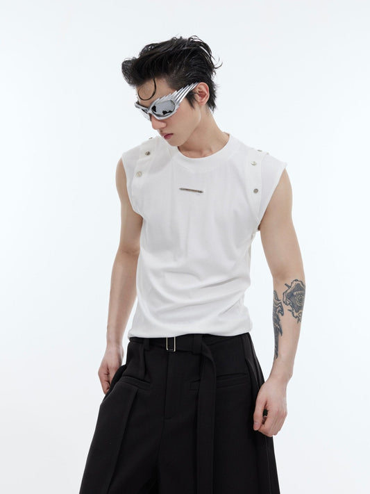 Street Hip-Hop Sheen Slim-Fit Tank Top with Sequin & Metallic Buttons