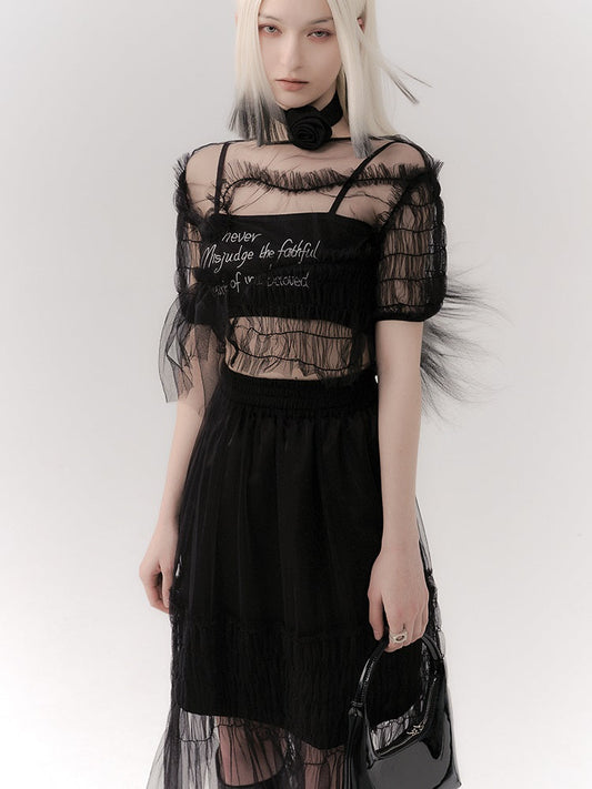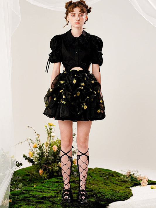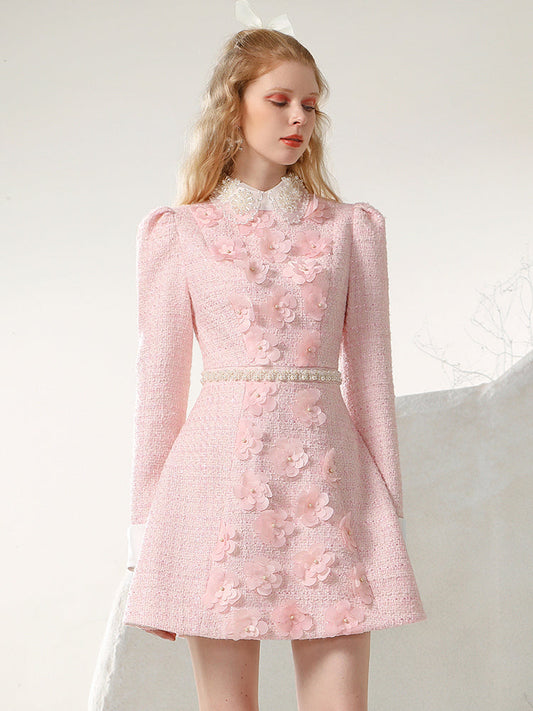 Tweed Flower 3D Flare Feminine Lace One-Piece