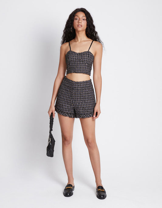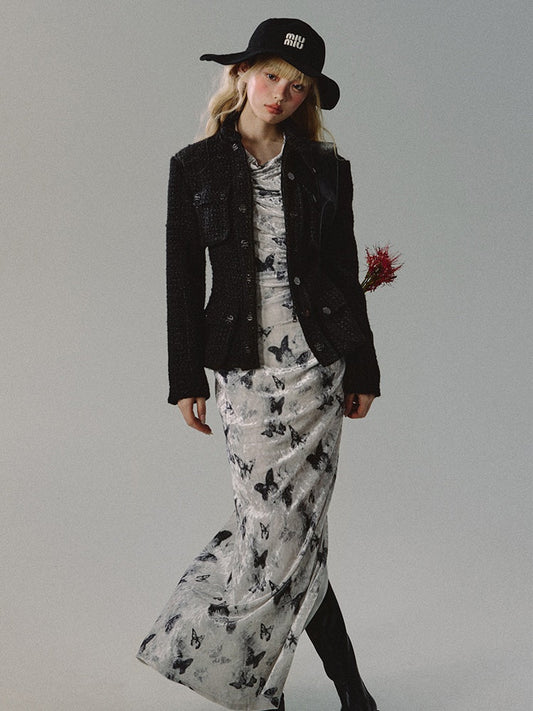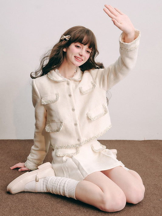 Tweed Cropped Slim Jacket & Pocket Design Mini Skirt