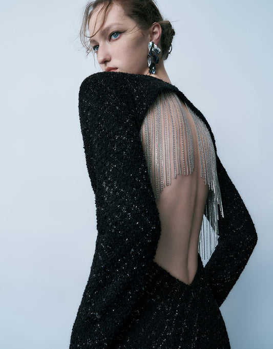Tweed Raglan Sleeve Crew Neck Straight Dress
