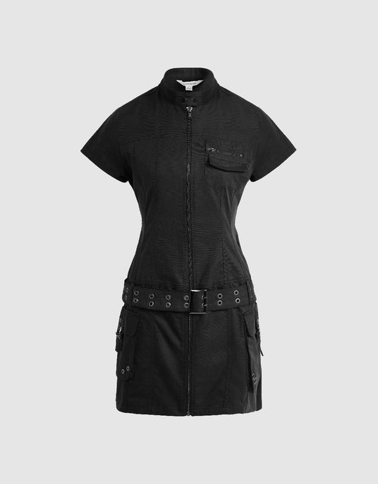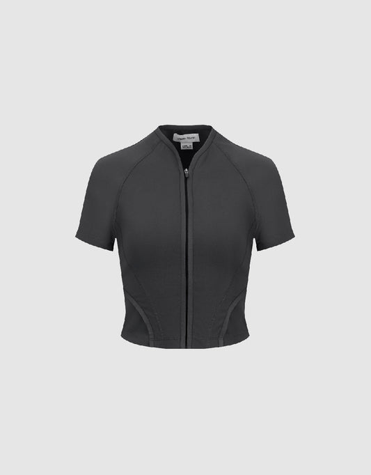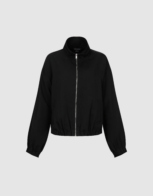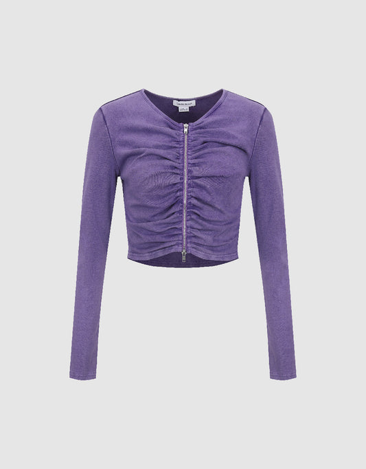 Zippered Shoulder-Padded Round Neck Sweatshirt and Joggers Set