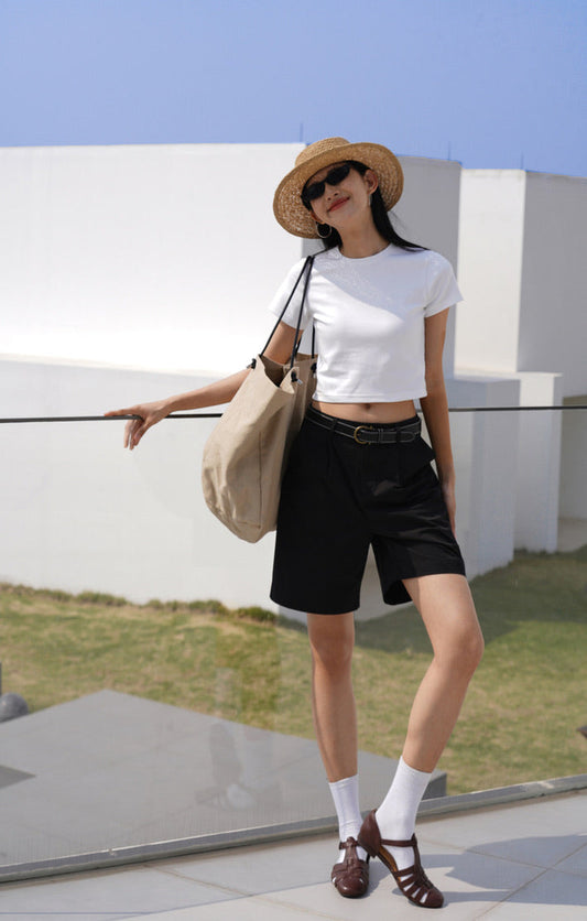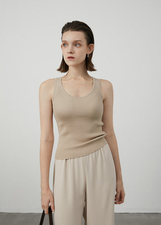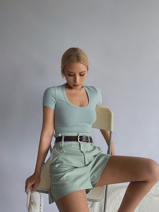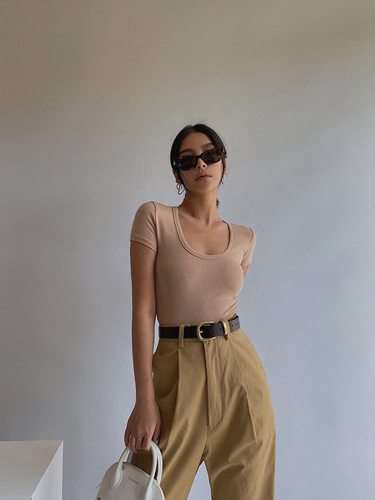 Classic U Neck Cap Sleeve Stretch Tee in Cream