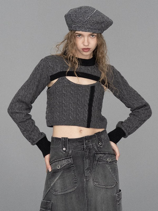 Classic Pleated Stitch Long-sleeved Sheer Dress
