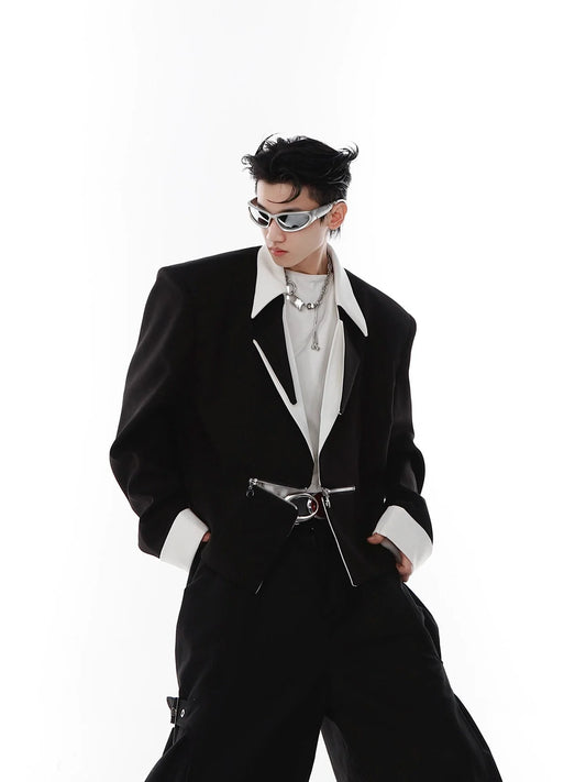 Contrast Short Blazer with Metallic Zipper | Unisex Avant-Garde Jacket