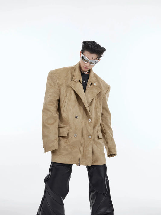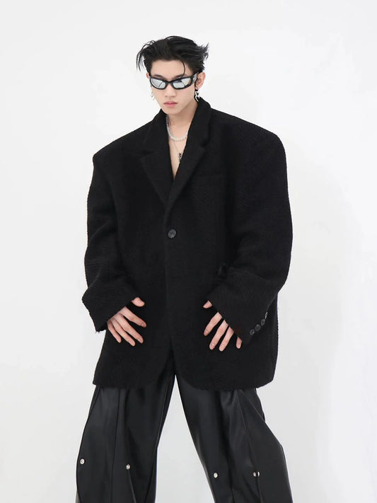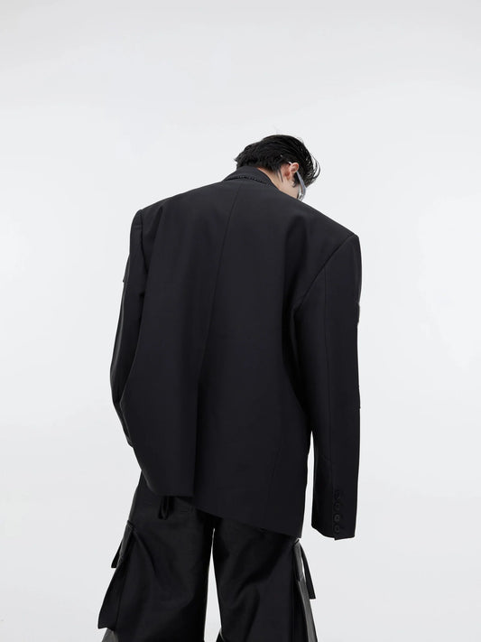Deconstructed Shoulder-Pad Suit Jacket | Metallic Detail Blazer for Men