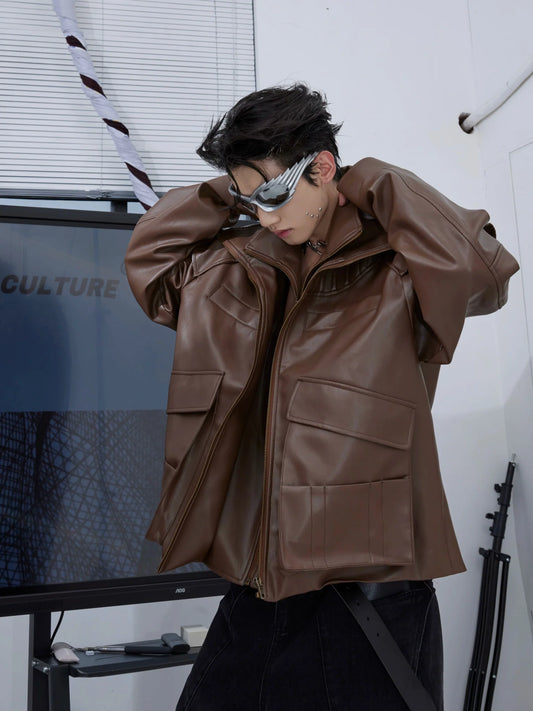 Retro Motorcycle Jacket with Shoulder Pads | Unisex PU Leather Bomber