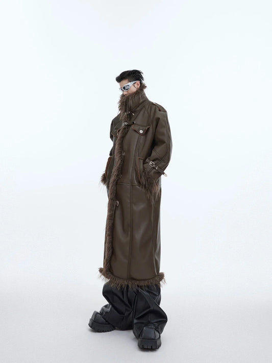 Deconstructed Faux Fur-Lined Long Coat | Belted Over-Knee Leather Jacket