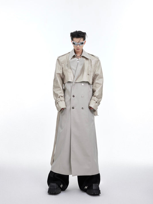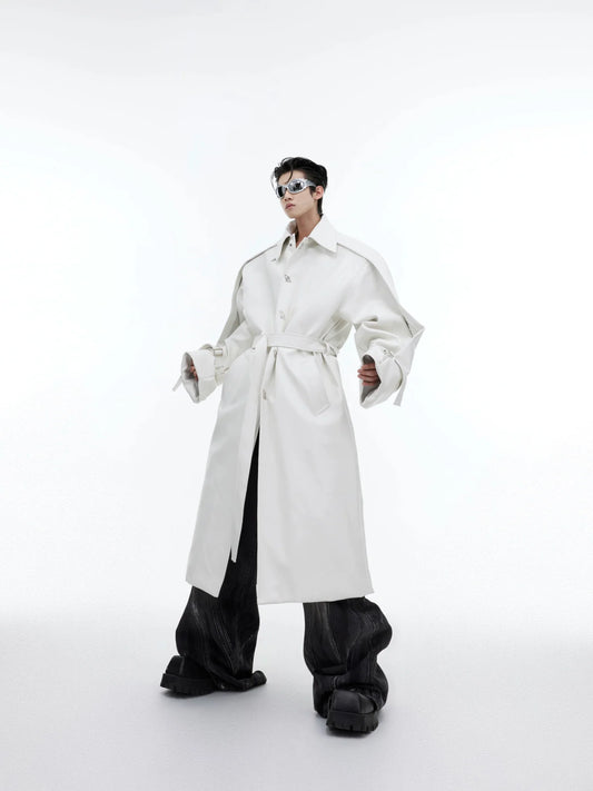 Deconstructed Faux Leather Overcoat | Split-Fold Loose Trench Outwear