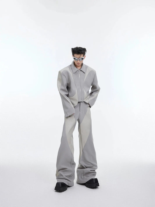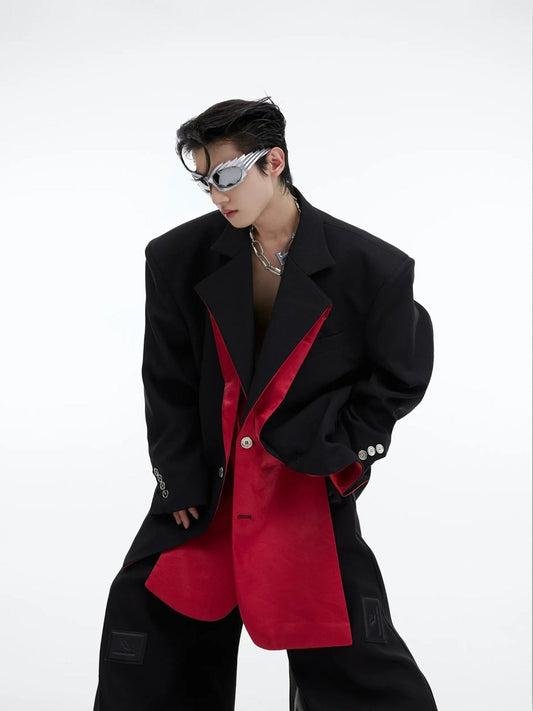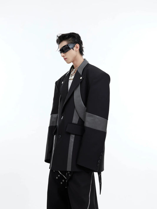 Structured Split-Design Blazer | Futuristic Contrast Jacket for Men