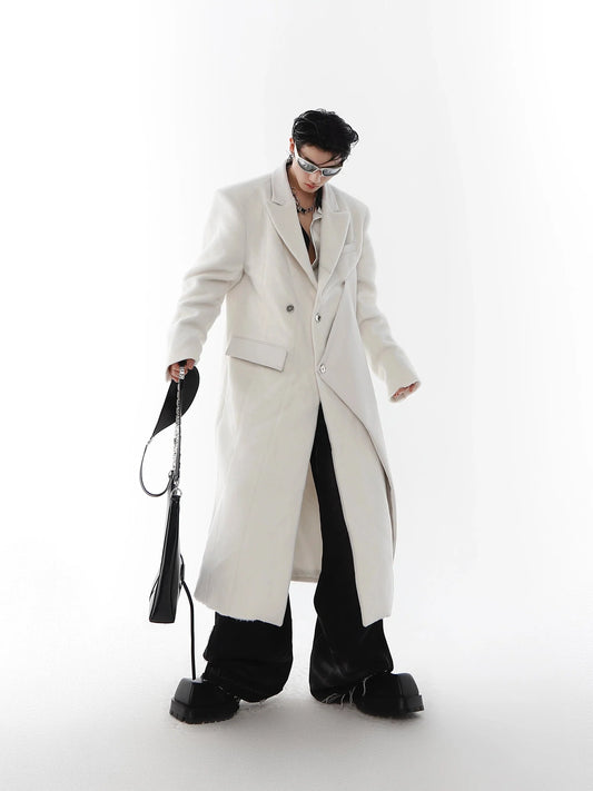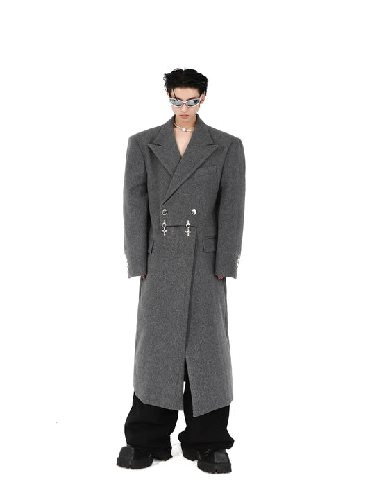 Unisex Woolen Overcoat | Minimalist Longline Trench with Metal Clasp