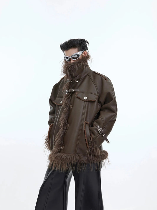 Luxurious Faux Fur Jacket with Deconstructed Collar | Avant-Garde Short Coat