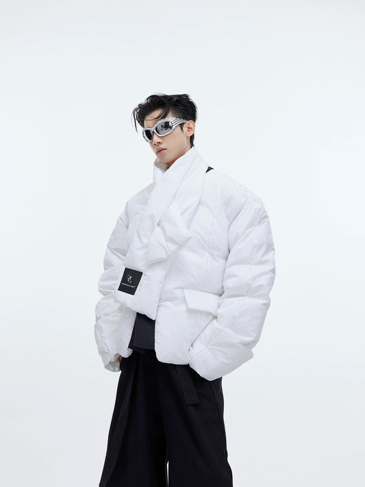 Split Design Nylon Puffer Jacket with Integrated Scarf | Short Jacket for Men