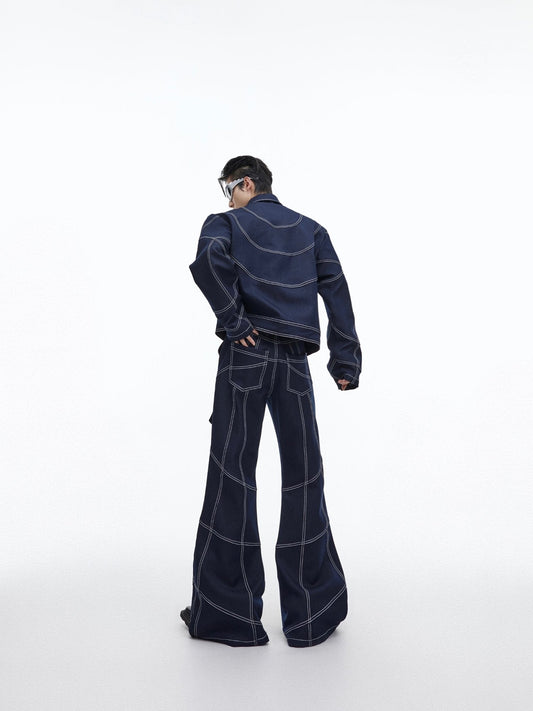 Topstitch Vintage Wash Denim Suit | Metallic Logo Button Jacket Set