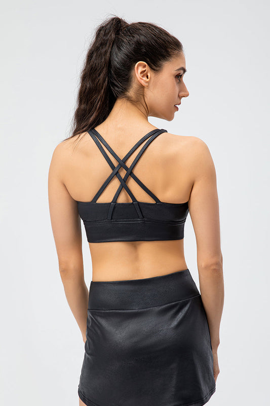 Faux Leather Crisscross Bra Medium Support
