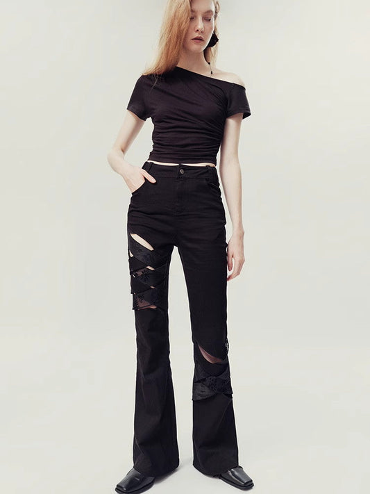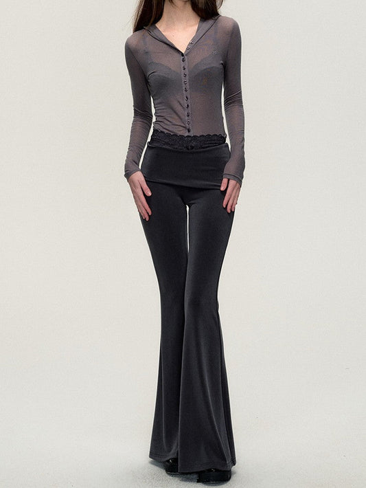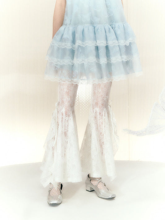 Nichi Lace Mesh Flower High-Waist Flare-Pants