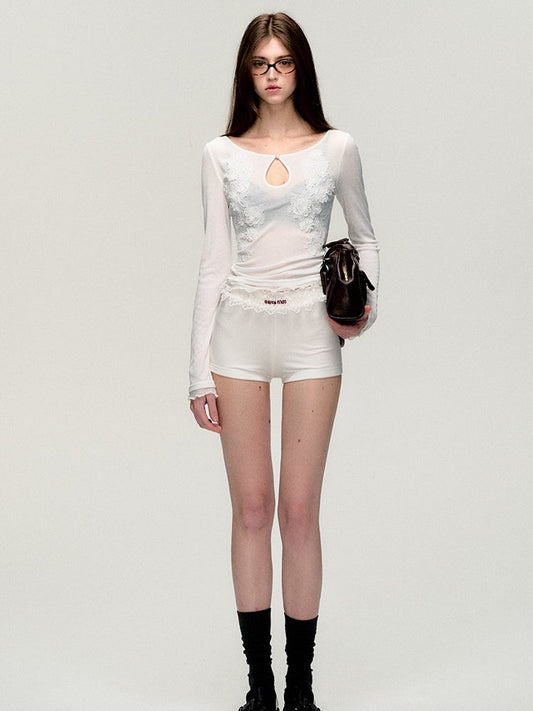 Lace Tight Knit Stretch One-Point Frill Short-Pants