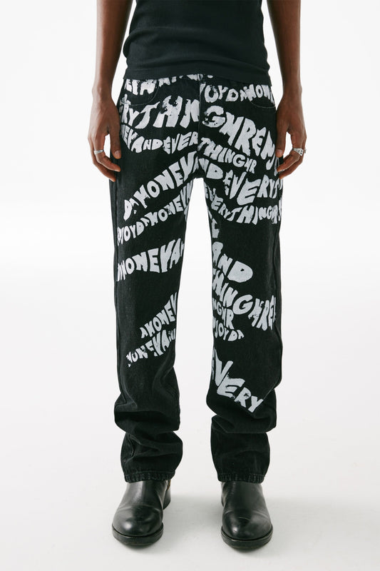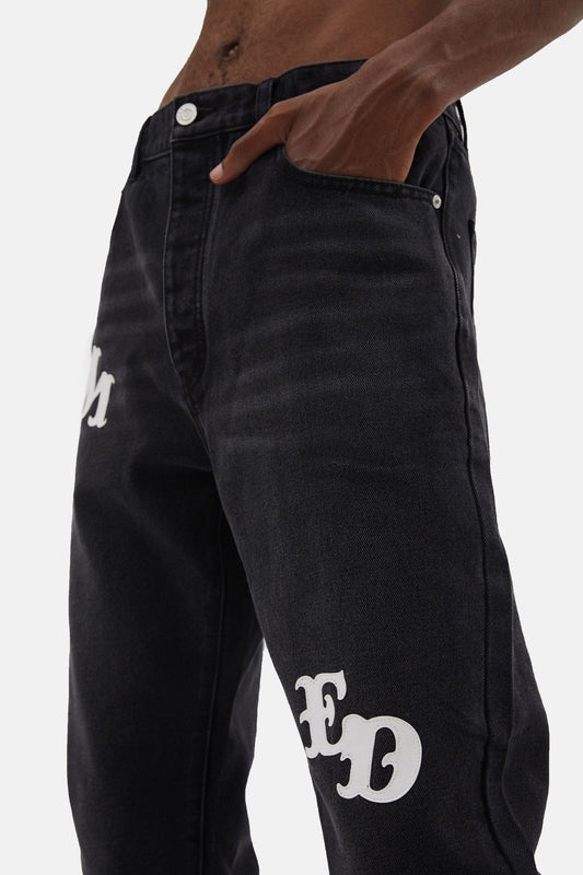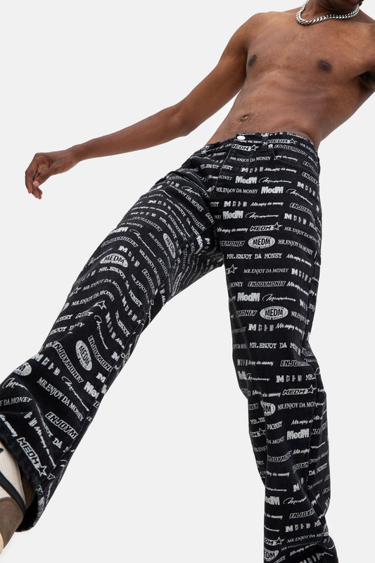 MEDM LOGO PATTERN PRINT BLACK DENIM PANTS