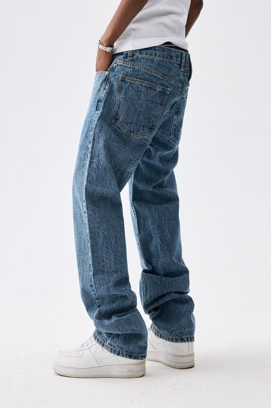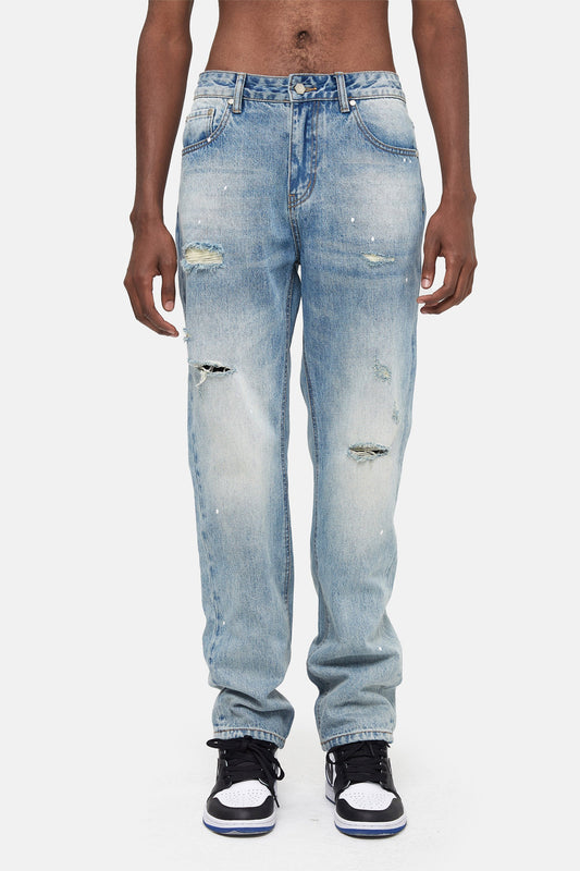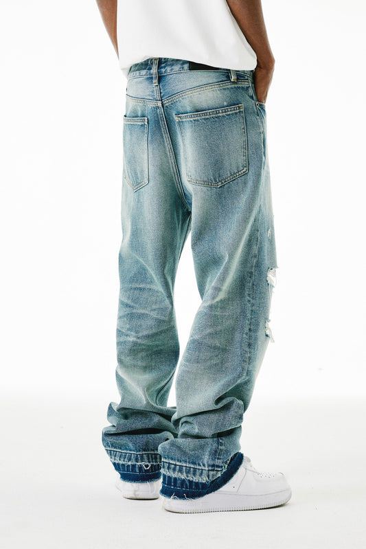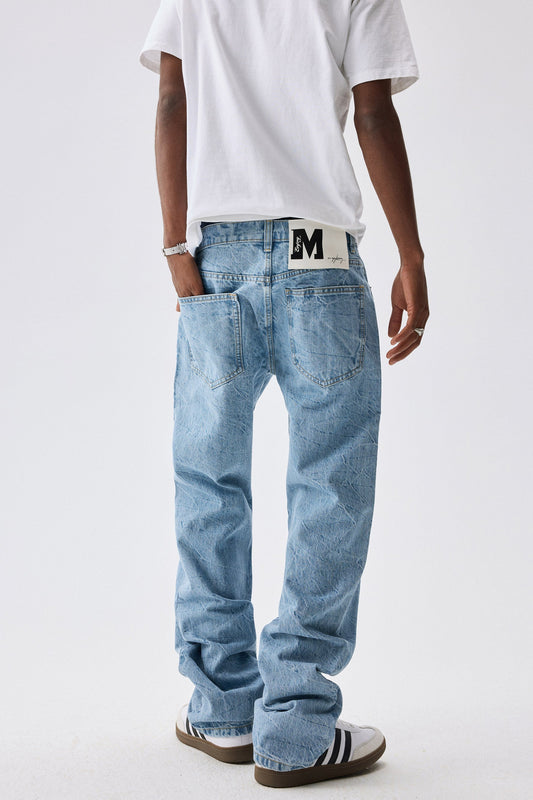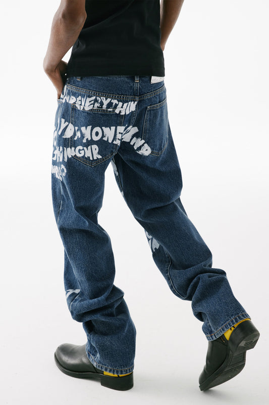 MEDM PATTERN PRINT BLUE DENIM PANTS
