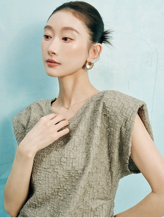 Asymmetrical Shoulder Ruched Textured Short Sleeve T-Shirt
