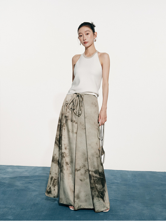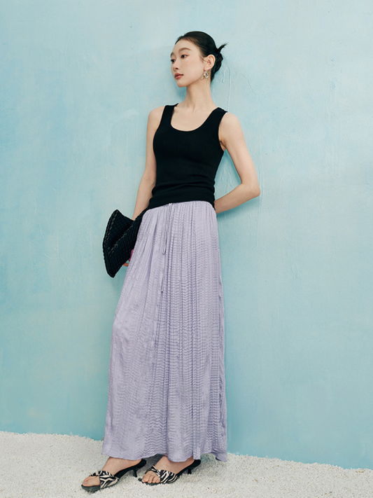 Pearl Satin Elastic Waist Ankle-Length Skirt