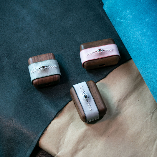 Vintage Leather Braided Ball Keychain & Earphone Case