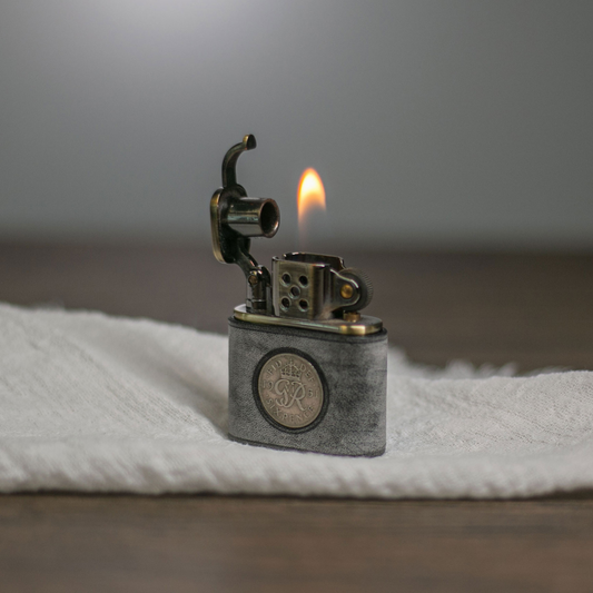 Vintage Copper Kerosene Lighter with British Coin & Ghost Bullhide