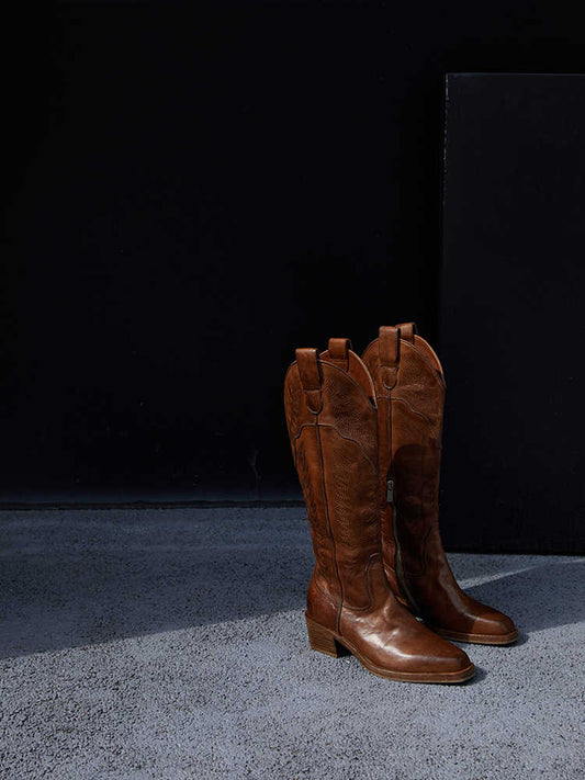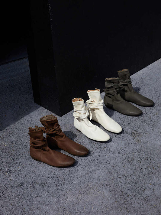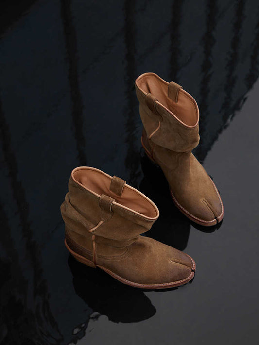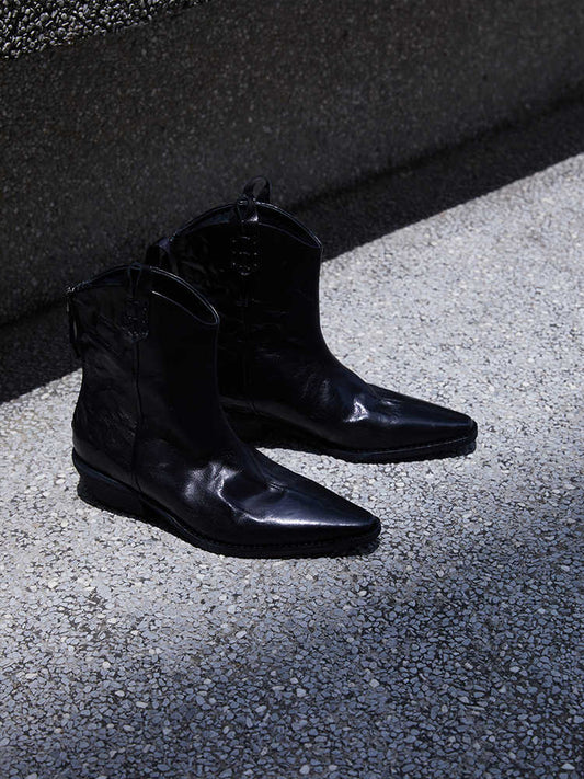 Textured Buffalo Leather Ankle Boots – Women’s V-cut Block Heel