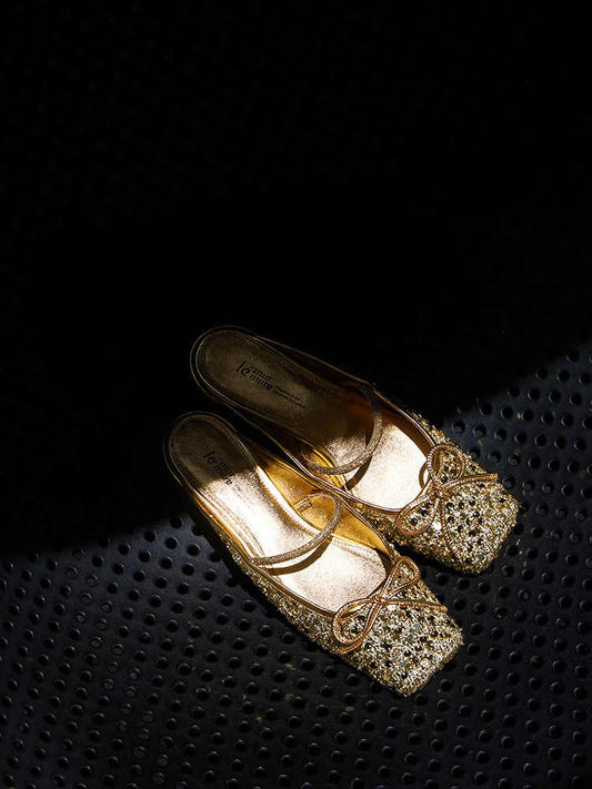 Starry Rhinestone Mesh Slip-On Beach Shoes