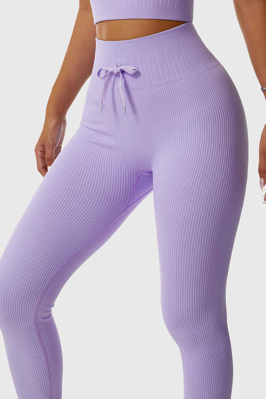 Ribbed Tie Front Seamless Workout Leggings