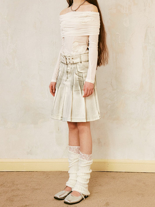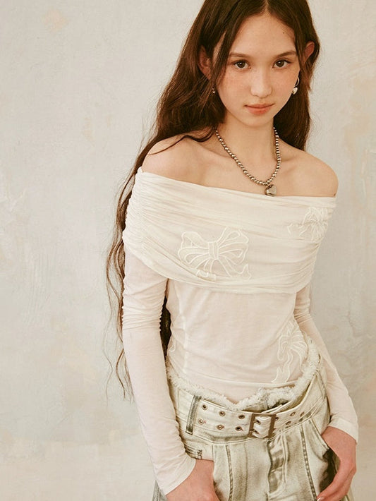 Bow Hollow Patch Embroidered Off-shoulder Top