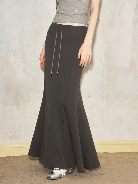 Lace Splicing Drawstring Sweat Mermaid Skirt