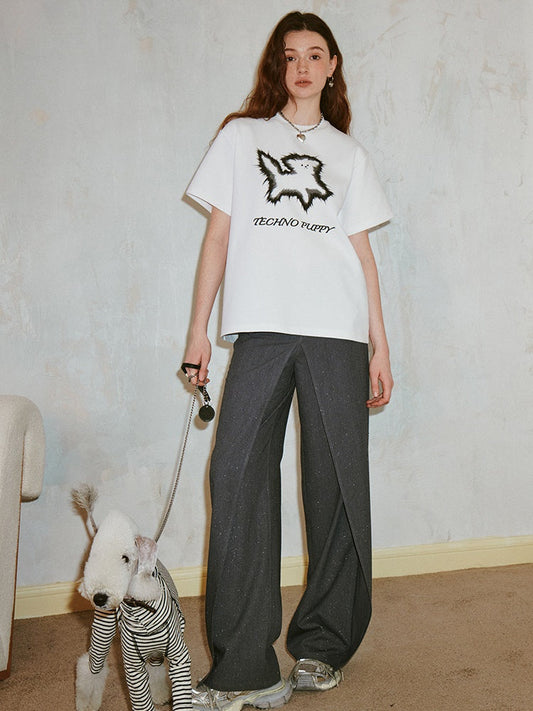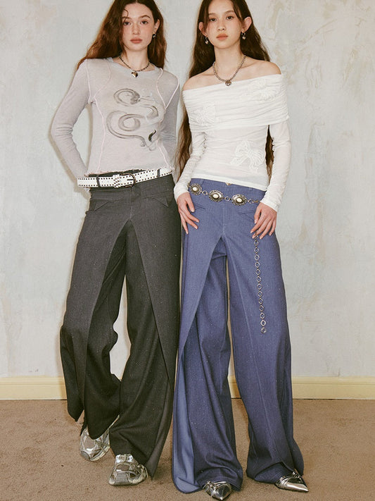 Irregular Shiny Wide-leg Floor-length Banana Pants