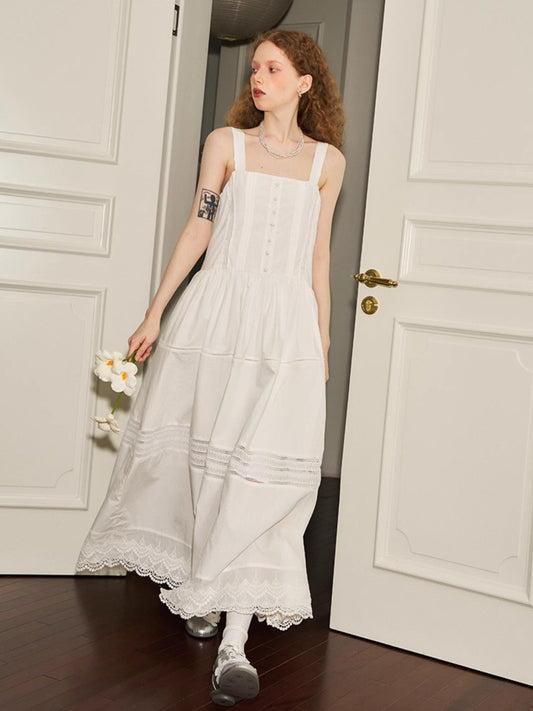 Lace Bow Embroidered Splicing Sleeveless One-piece