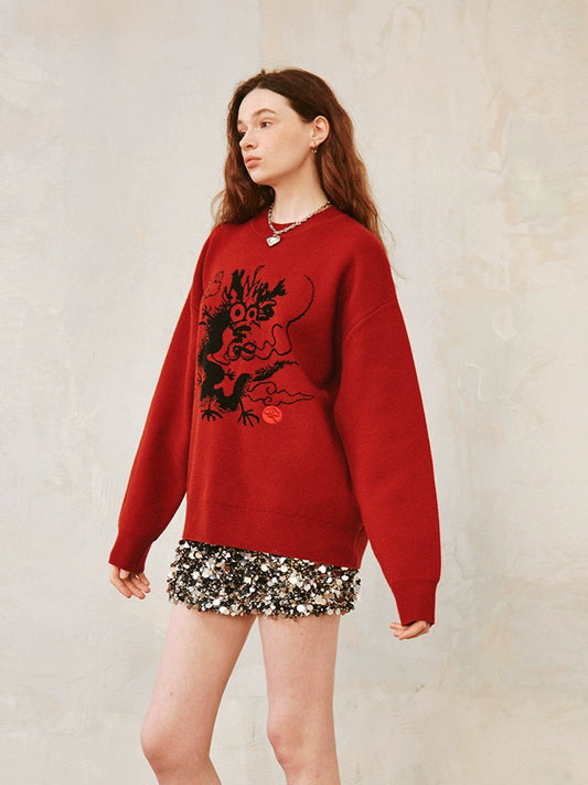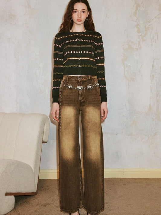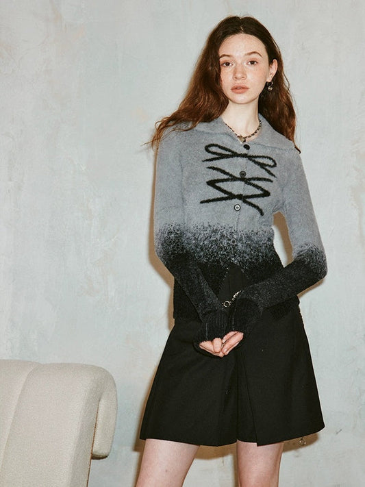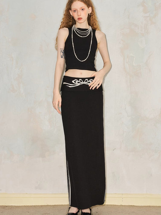 Waistband Bow Jacquard Knitted I-Line Skirt