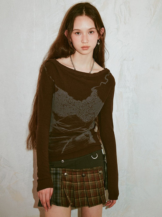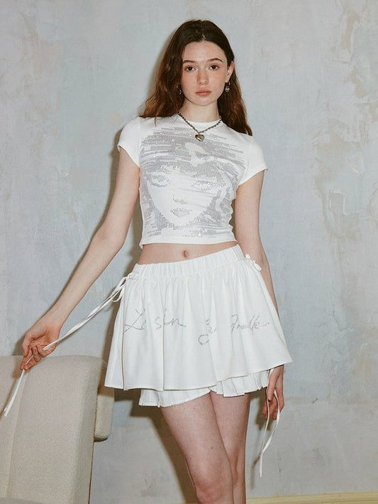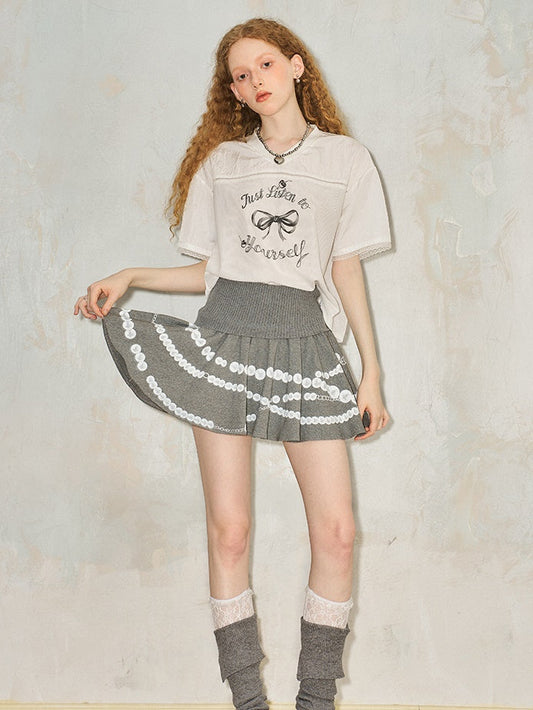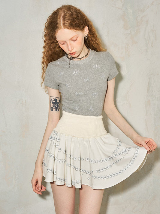 Pearl Necklace Simulation Printed Knitted Waist Skirt