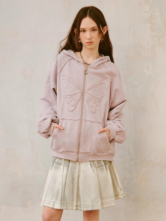Butterfly Embroidery Loose ZIP-Up Hooded Sweat