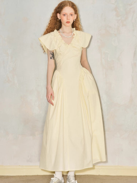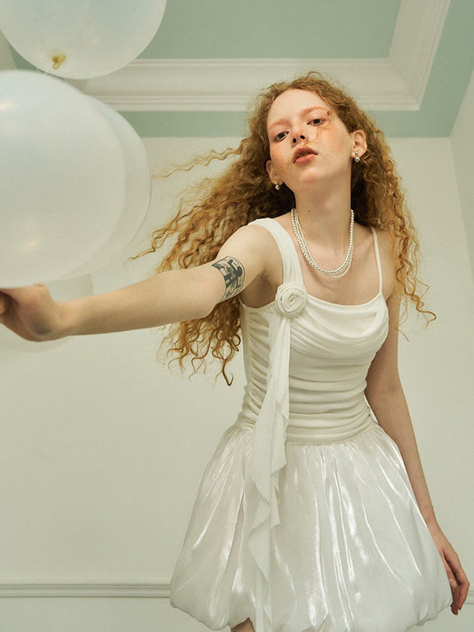 Irregular Pleated Three-dimensional Rose American Sleeve Dress