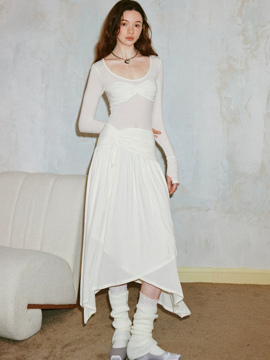 Classic Irregular Hem Long-sleeved Sheer Dress