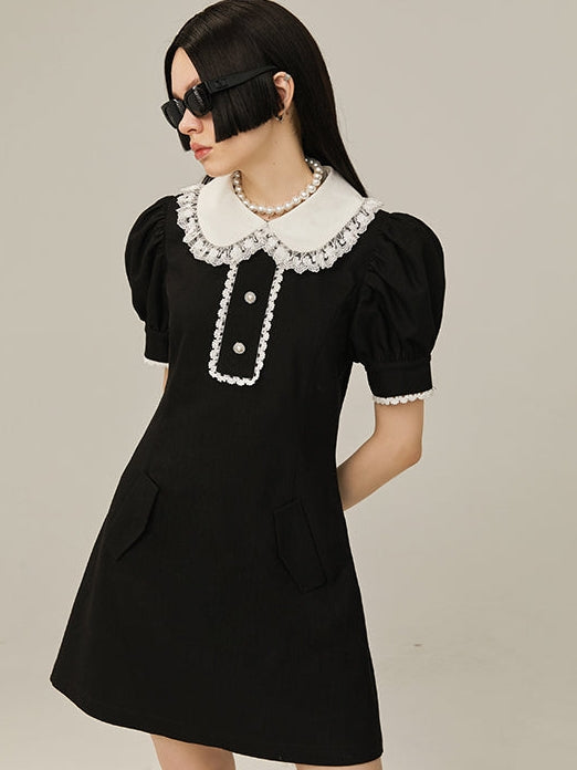 Short Sleeve Doll Collar Short Dress