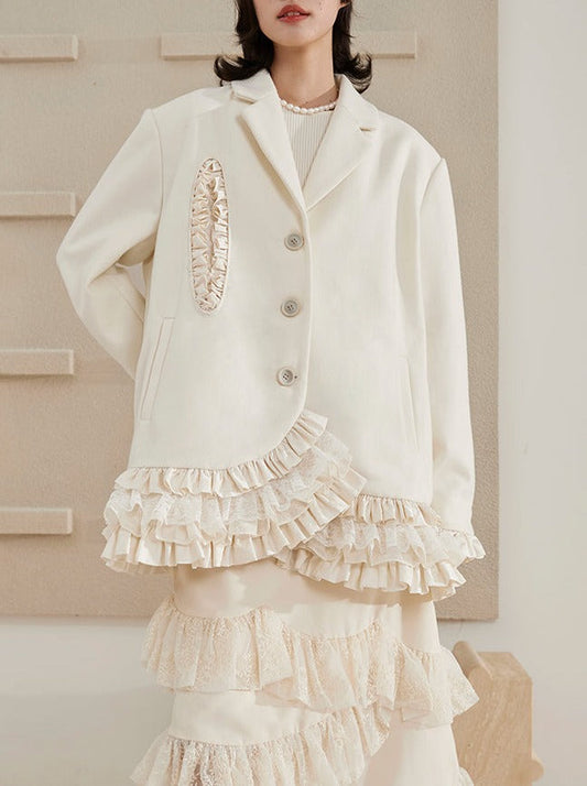 Lace Layered Woolen Jacket