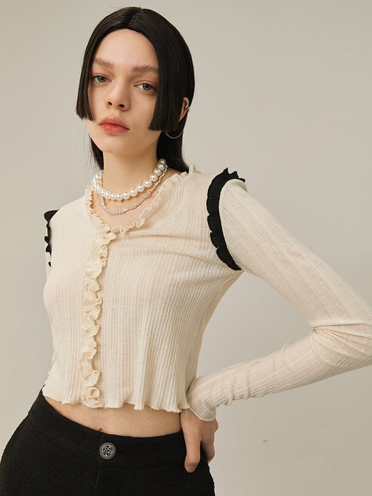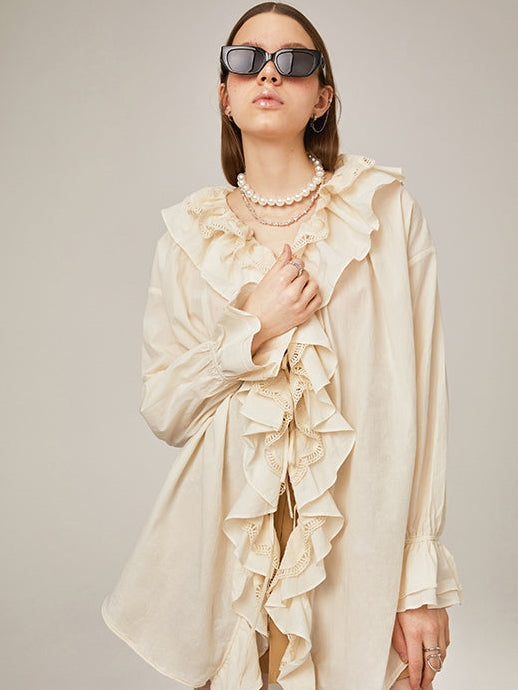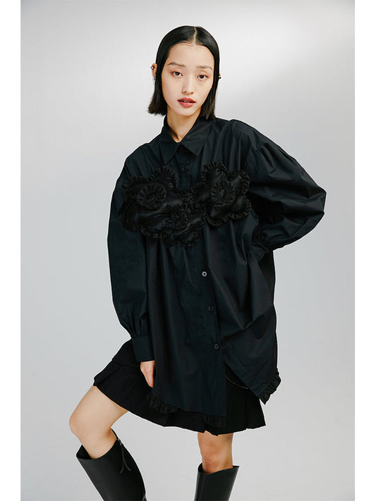Cotton Flowers Irregular Ruffled Shirt